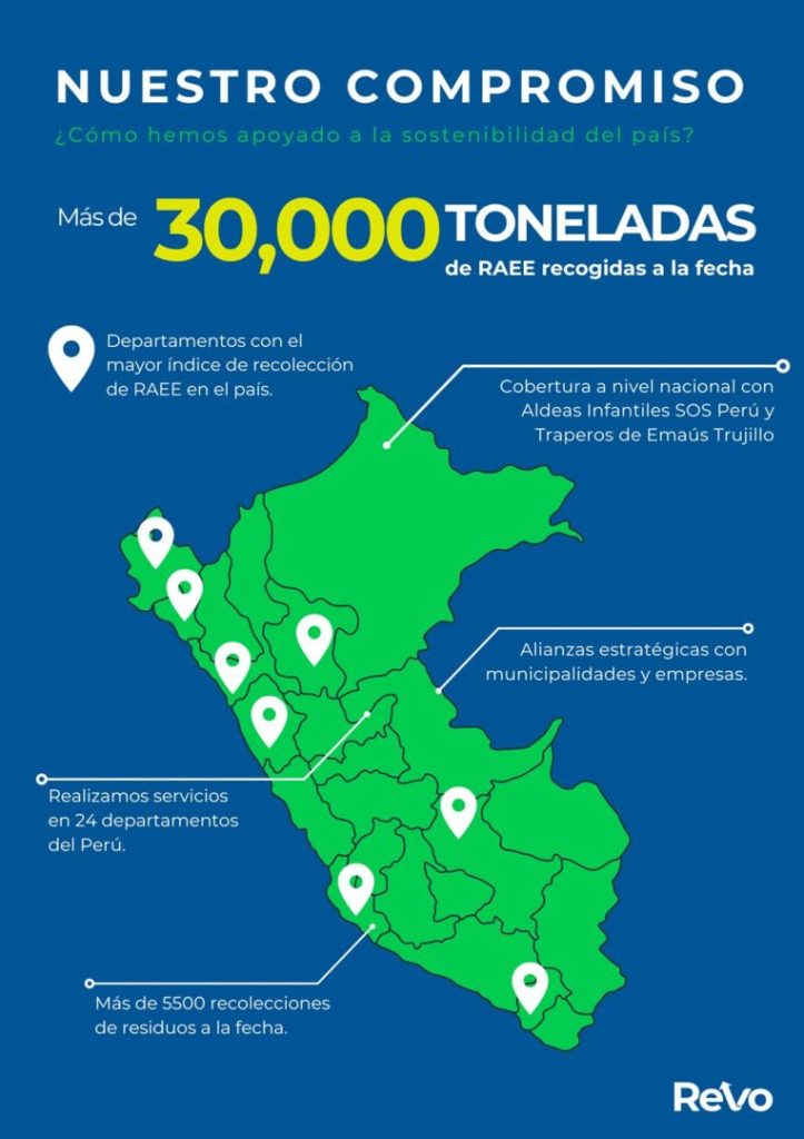 En el marco de cumplimiento del Decreto Supremo Nº009‑2019-MINAM Régimen Especial Para la Gestión y Manejo de los RAEE y del Decreto Supremo Nº024‑2021-MINAM Régimen Especial para la Gestión y Manejo de los Neumáticos Fuera de Uso, ReVo ha desarrollado Sistemas de Recolección selectivos para estos materiales a nivel nacional, con el fin de apoyar a los importadores, fabricantes, distribuidores, comercializadores y generadores de residuos, en cumplimiento de sus metas de recolección y los demás indicadores de las normativas vigentes.